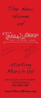 HOURS: As we transition the studio from 135 to 214 Spring Street, Traillworks be open on 2nd Saturday from 10 - 8pm, and the rest of the month by appointment only and during regularly scheduled lesson times.